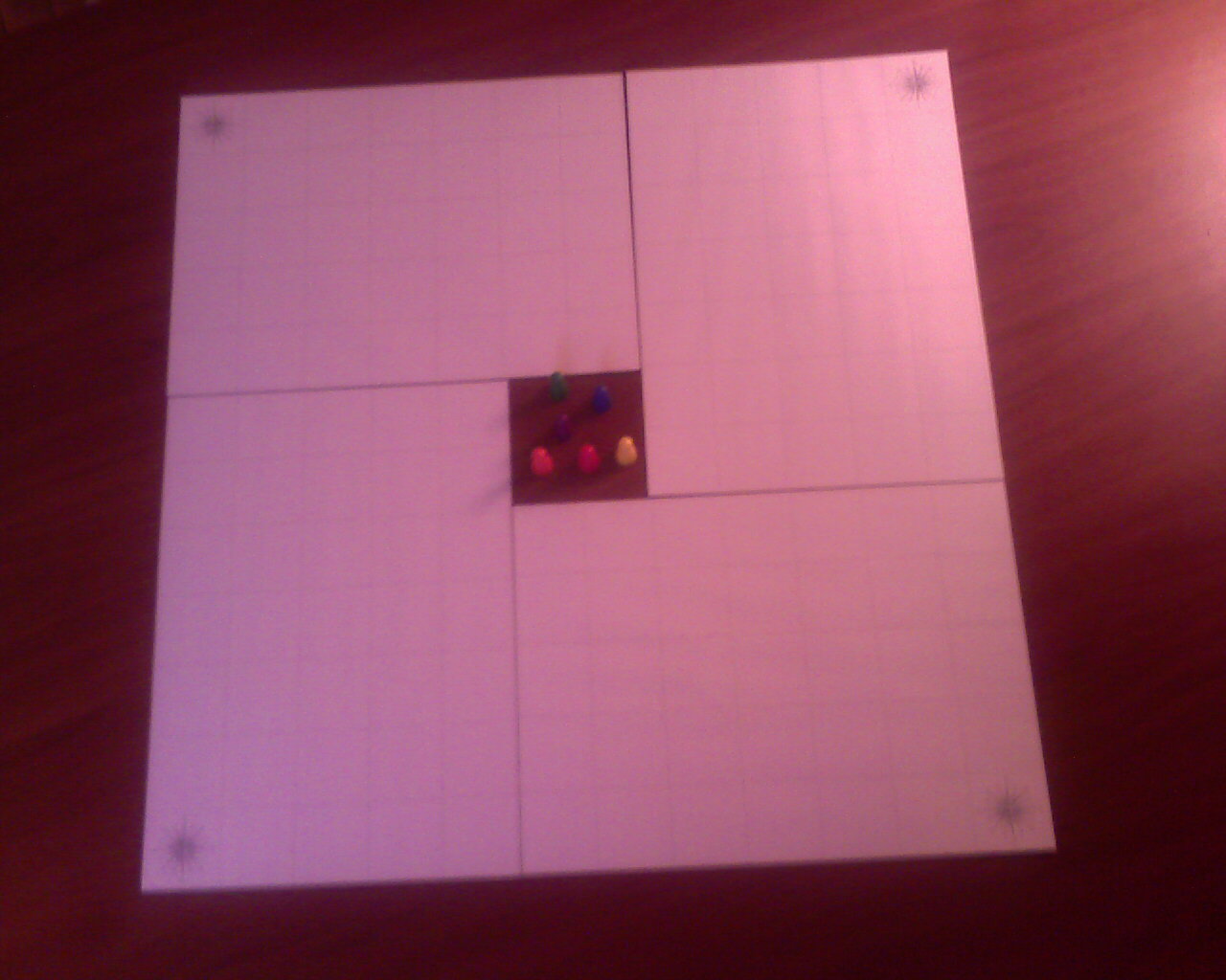 Tous les joueurs partent de la cellule située au centre du plateau et cherchent à gagner une des 4 sorties situées aux 4 coins du plateau.